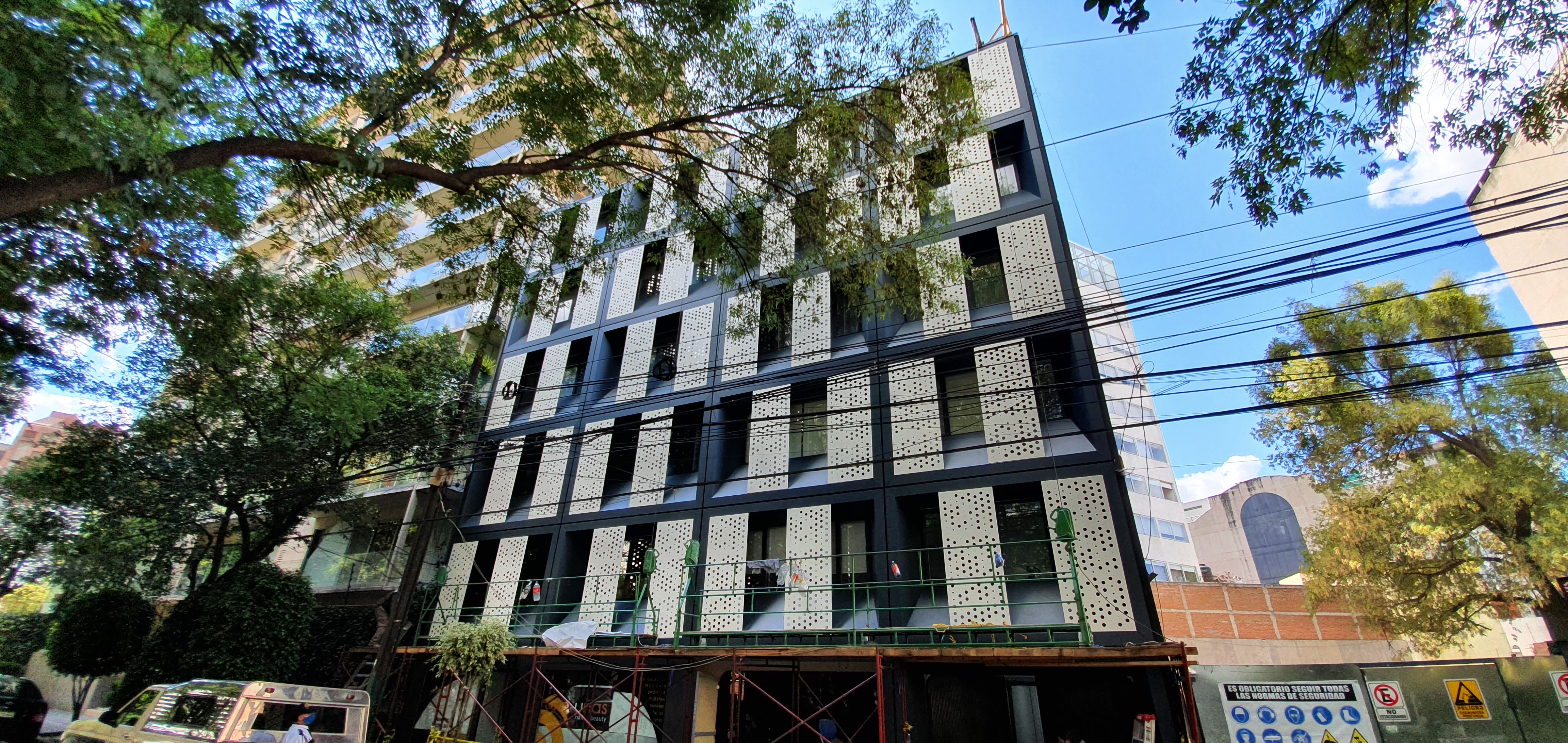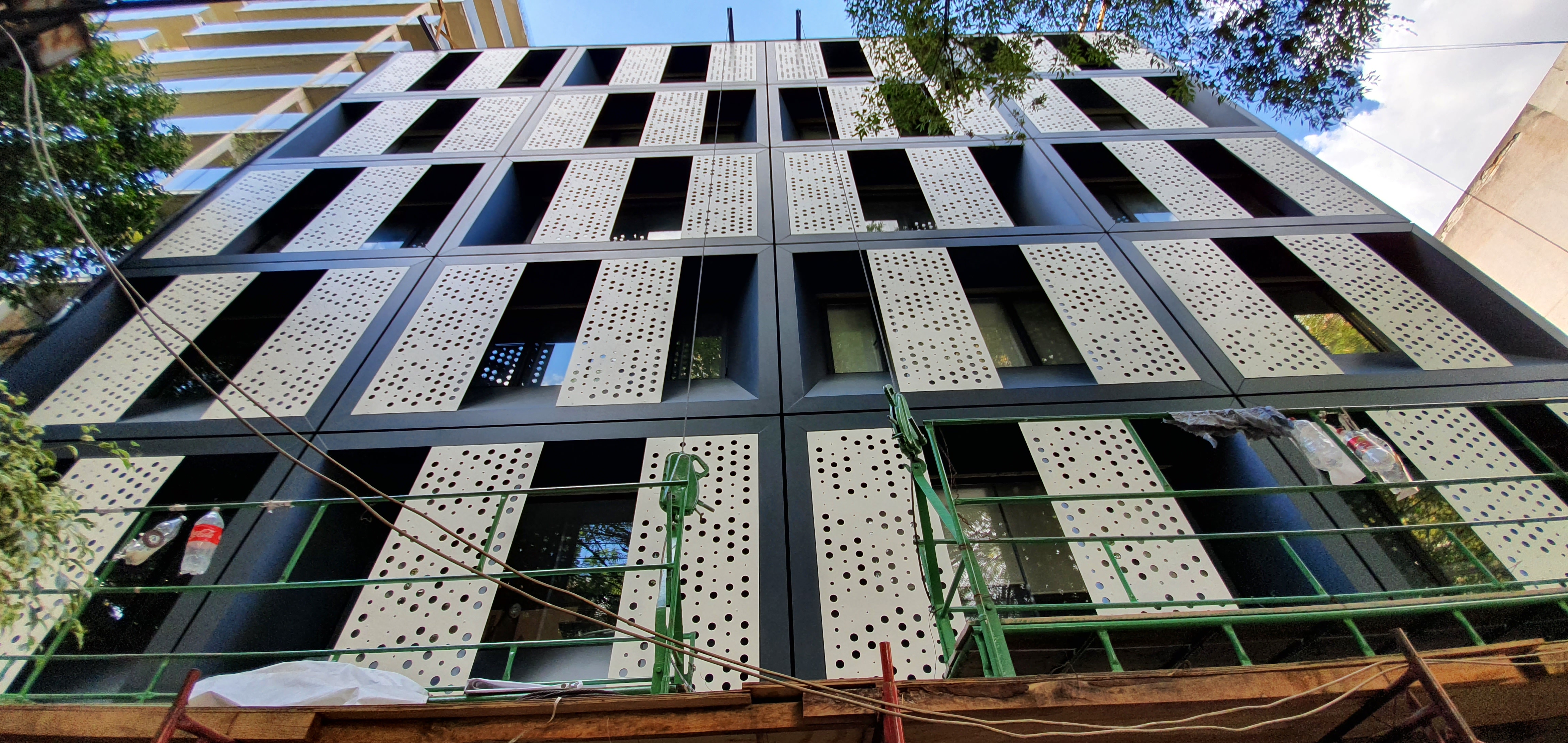 Suministro e Instalación de Sistema de Fachada HPL Trespa tanto como Revestimiento, como elemento de Control Solar.