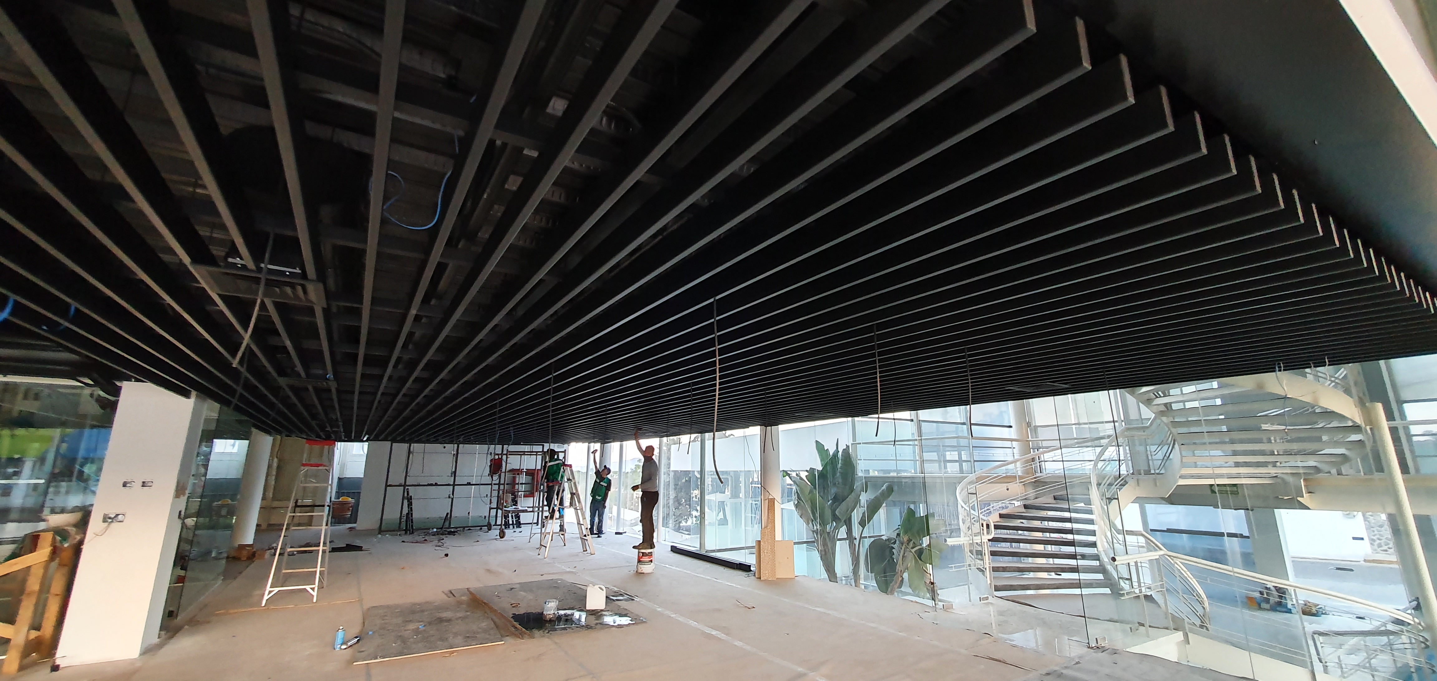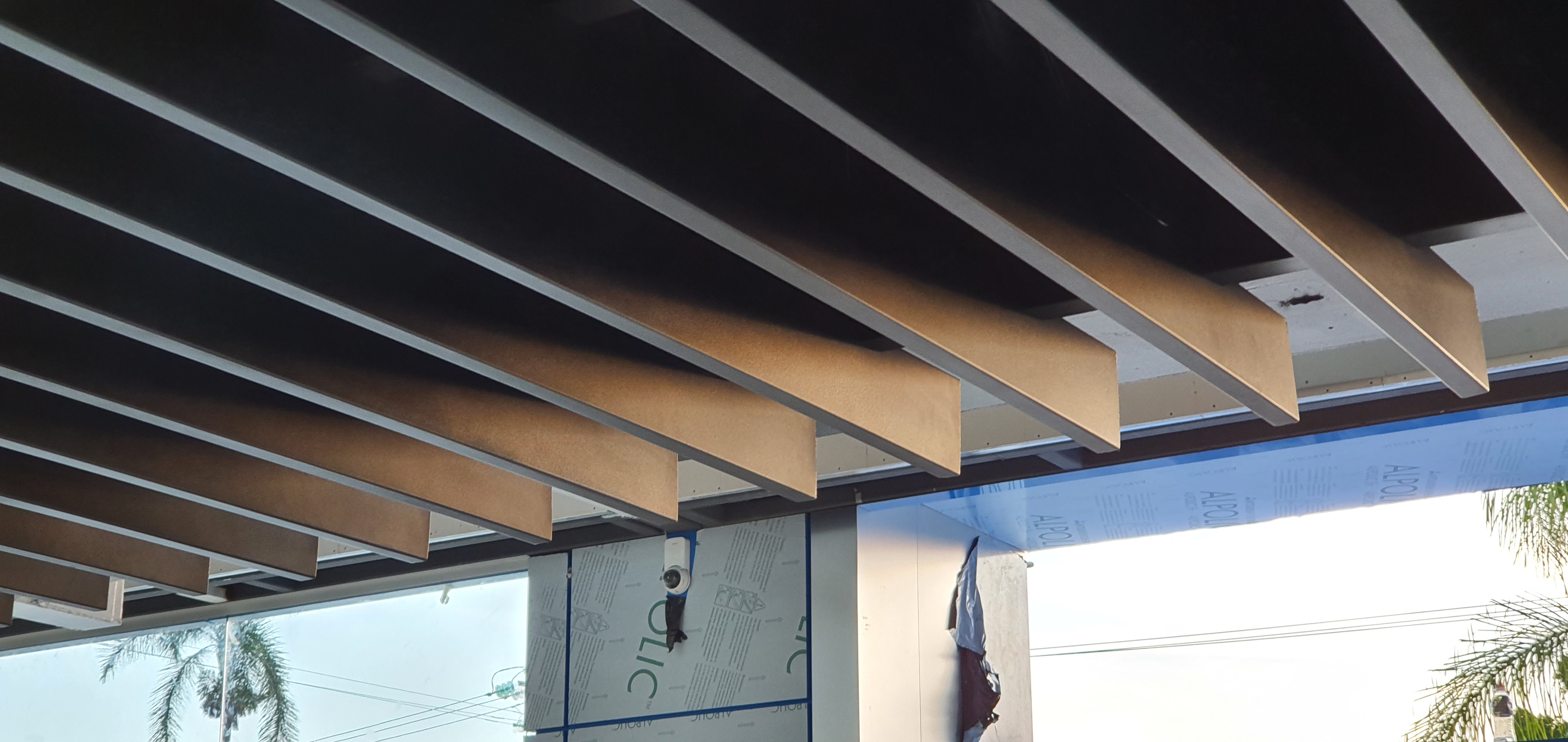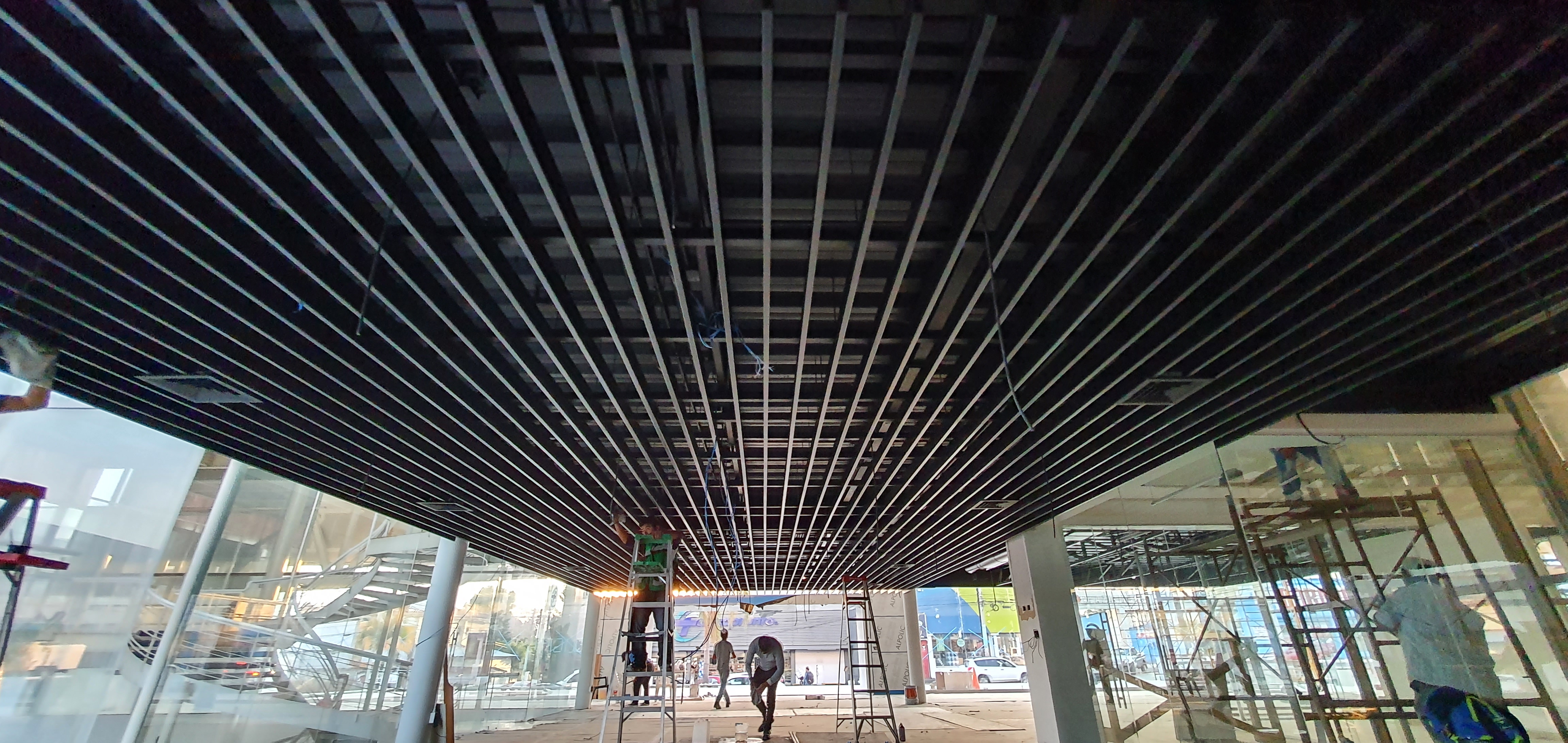 Suministro e Instalacion de Plafon metálico tipo Pergola, creando ambientes estilizados y modernos, ideal para reducir la escala de los espacios.