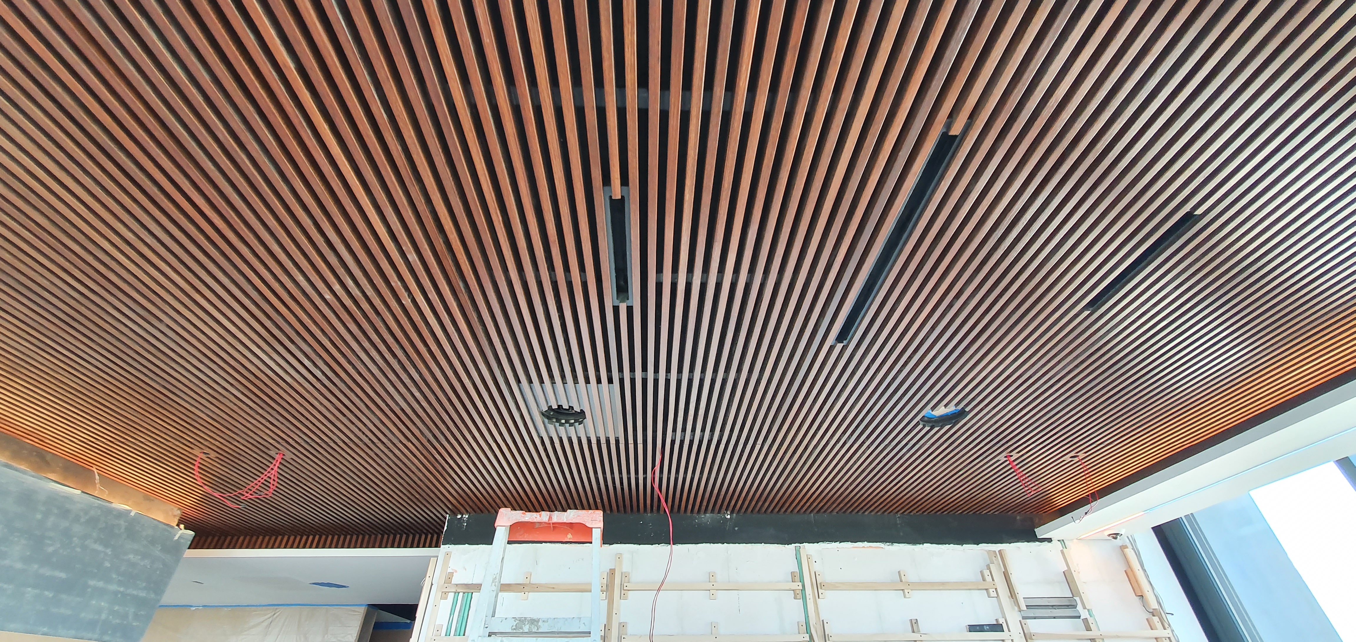 Suministro e Instalacion de Plafon de Madera Natural a base de Listones de Encino Americano.